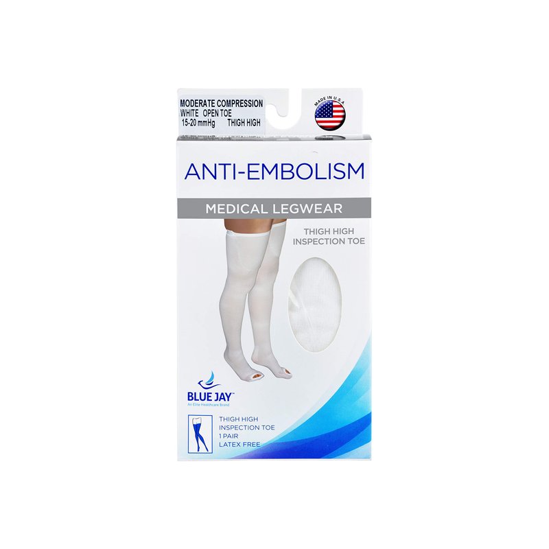 Blue Jay Anti Embolism Thigh High Stockings | Provides Gentle Massage | Improves Blood Circulation - Inspection Toe at The Bottom - Prevents Skin Allergies & Odor - White Colour - Size 15-20 mm
