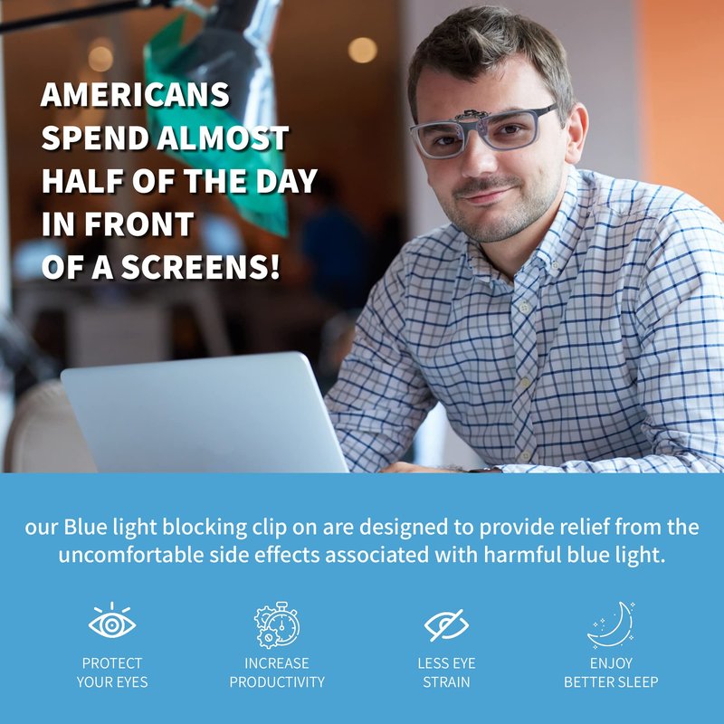 - ☑️ MONEY BACK GUARANTEE!! We work hard to give you a high-quality product and the greatest customer service experience. Please get in touch with us right away to let us know if you're not completely satisfied so we can fix it. To enjoy your BLUE LIGHT CLIP ON BLUE BLOCKER GLASSES and get rid of all blue light computer symptoms, click Add To Cart right away.