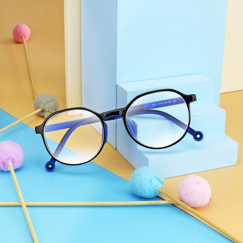 VisionGlobal Kids Blue light Blocking Glasess loved by children around the world Today children are glued to their electronic devices more than ever before. Constant exposure to blue light emitted by the screens causes negative side effects on your child’s eyes and vision. These digital equipment are often the source of radiation and harmful blue light, but most parents are ignored about that. The harm of blue light to eyes varies with age, the kids more vulnerable to blue light since they eyes are still in development stage. Study showed that the retina response differently to blue light, kids retina can be hurted by a broader specturum of blue light. Care for the children's future, please protect their eyes when they were young. Blue Light Blocking Test Exposure to blue light from digital devices can cause digital eye strain, along with symptoms that include headaches, blurred vision, dry eyes and even neck pain. VisionGlobal Blue Light blocking computer glasses are designed to fight digital eye strain. They block scattered blue light emissions from computer screens, smartphones, tablets and e-readers. This can help to reduce fatigue, squinting, tired eyes and the other associated symptoms of digital eye strain. The test card reacts to blue light sensitively by turning into blue. When use the blue light torch to beam the blue light on the test card directly, the test card turns into blue obviously. When we put the VisionGlobal Blue Light Blocking glasses on top of the test card and beam the light again, it stays white as Blue light blocking lens has filtered 85% of the blue light