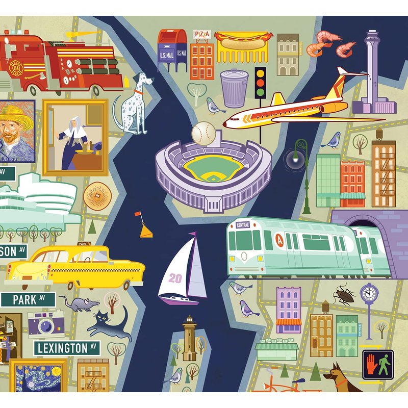 You're the VIP guest on a jam-packed getaway to the Big Apple! Visit dozens of iconic landmarks—and discover countless lesser-known gems. You can almost smell the pizza and hear the street corner musicians. Friends and family of all ages will delight to join in and help piece together this colorful map puzzle.