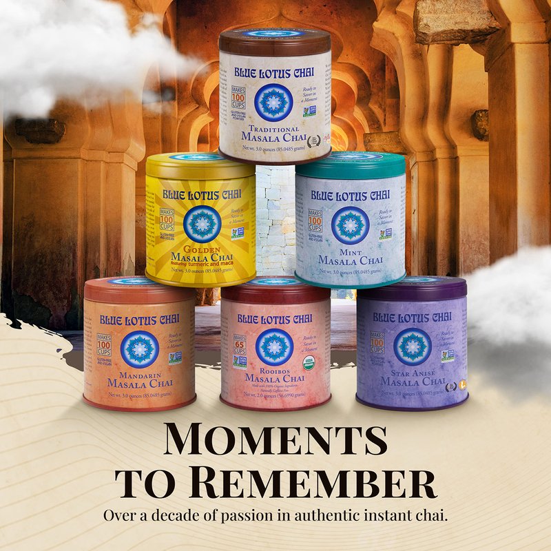 Blue Lotus Chai - Star Anise Masala Chai - Makes 100 Cups - 3 Ounce Masala Spiced Chai Powder with Organic Spices - Instant Indian Tea No Steeping - No Gluten