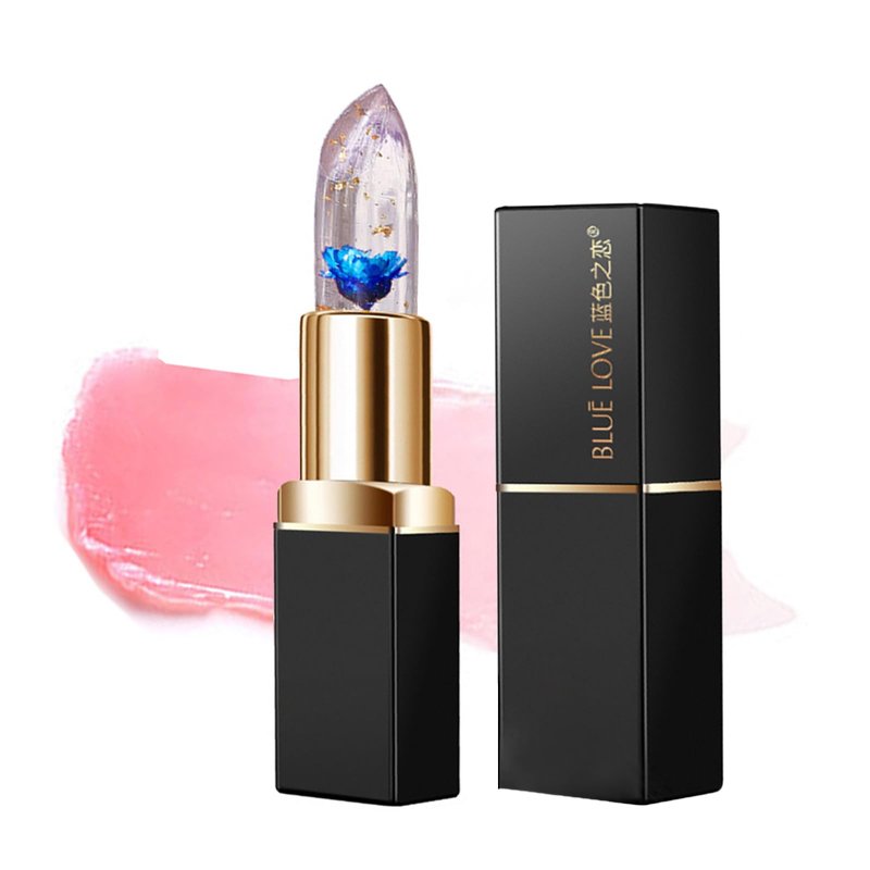 - 【Unique Design】Transparent jelly lipstick centimeter with a pretty blue or gold flower inside and gold foil lip balm, crystal jelly flower color changing lipstick design