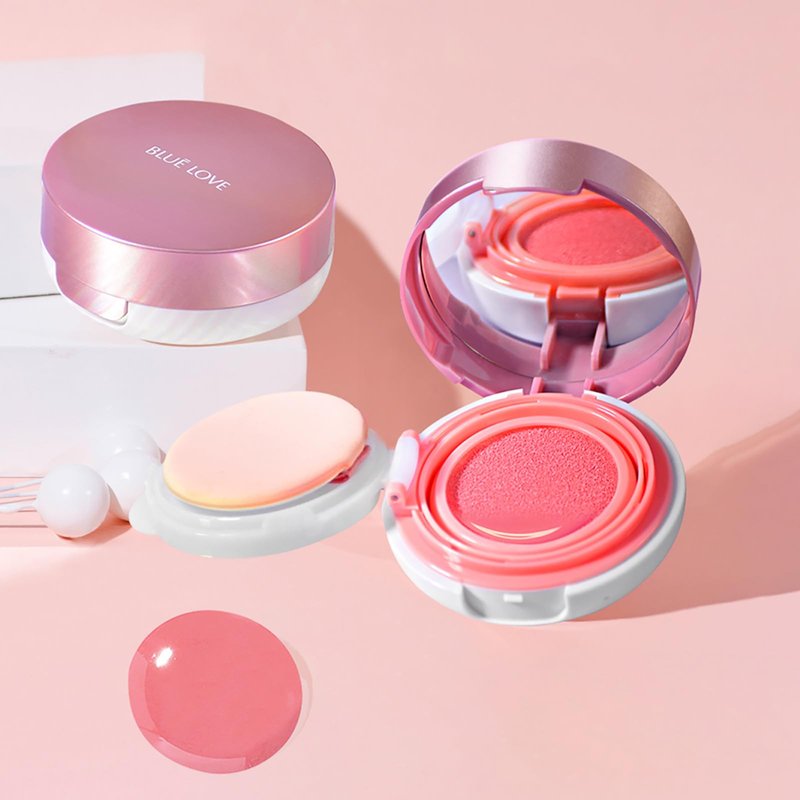 BLUE LOVE Cushion Liquid Blush for Cheeks, Finesse Liquid Silky Face Blushes Makeup, Contour & Highlight Cream Blush for Sheer Finish with a Natural Glow (02# Peach Pink, 2.27 Ounce)