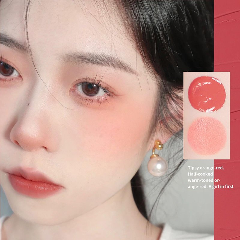 - Liquid Air Cushion Blusher - Silky liquid whip cream blush for cheeks liquid, fine texture and good spreadability. Apply pink orange liquid blush randomly on the sponge applicator, layering until you achieve your desired shade. The makeup products also comes with a mirror so that you can keep your face makeup whenever and wherever you go out