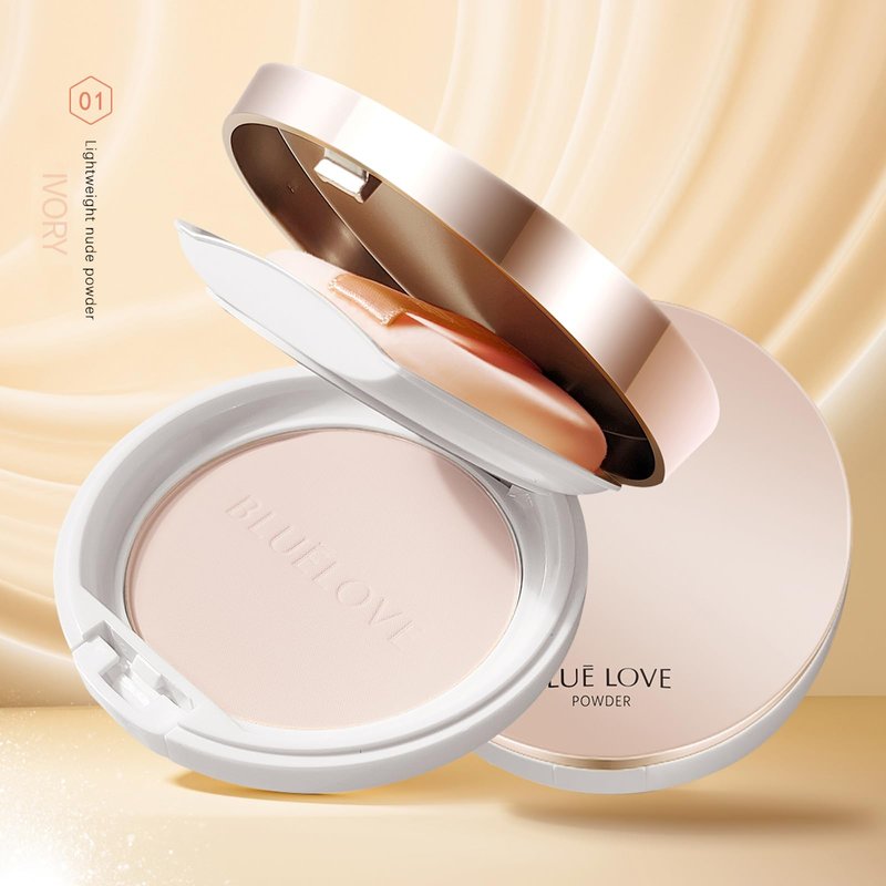 BLUE LOVE Face Finishing Pressed Powder, Lightweight Matte Setting Powder Foundation Compact, Shine & Oil Free Face Sets Makeup, Longwear Medium- Full Coverage with Flawless Finish (Ivory)