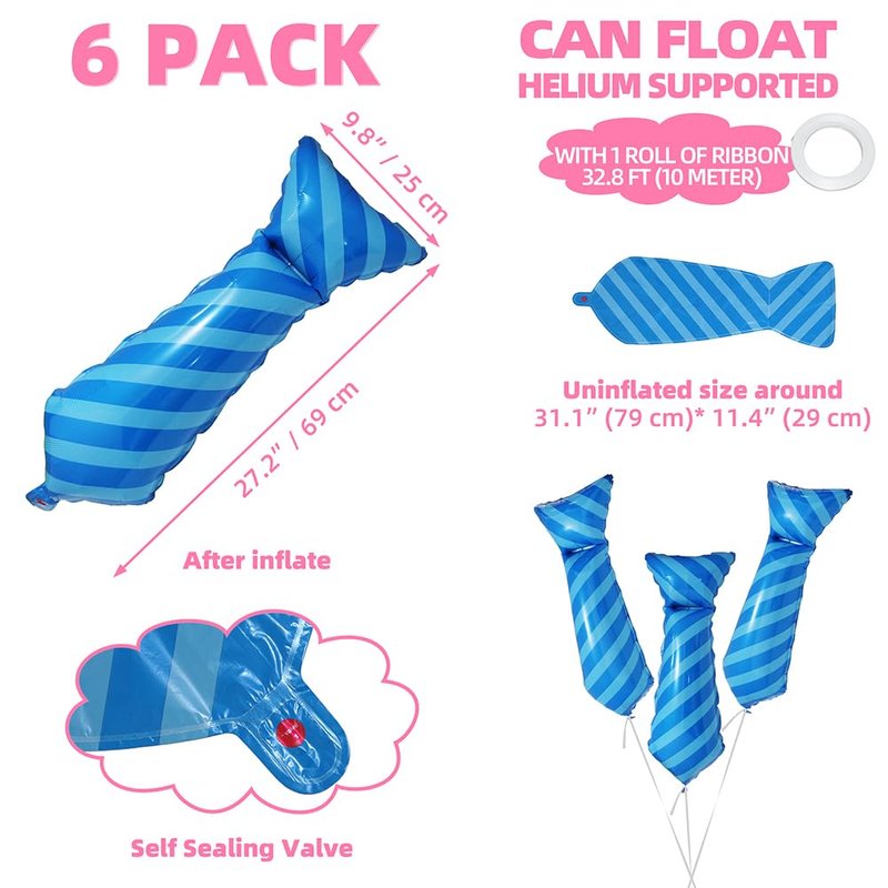 6 * 3D necktie balloon neck tie balloon, blue color, size is around 31.1'' (79 cm) tall * 11.4'' (29 cm) width (it gets smaller and around 27.2'' when inflated, see picture for size).