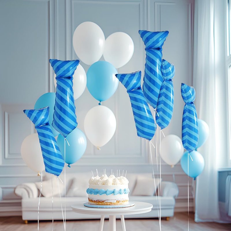 - 6 PACK BLUE NECKTIE BALLOONS NECK TIE PARTY SUPPLIES★ Our blue necktie aluminum foil balloons, pack of 6, blue color, uninflated size is around 31.1'' (79 cm) tall * 11.4'' (29 cm) width (it gets smaller and around 27.2'' when inflated, see picture for size), double side printed & more thicken than other.