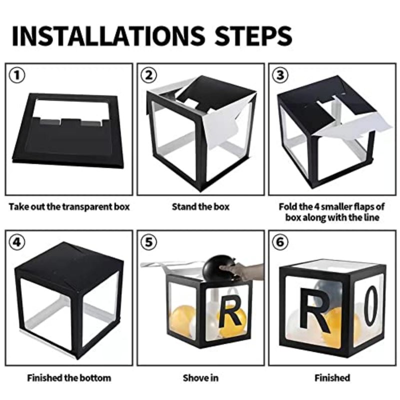 Material and Size : The cabinet is made of high-quality thick paper and transparent plastic, durable. Each balloon box measures 11.8 x 11.8 x 11.8 inches (30 x 30 x 30 cm)