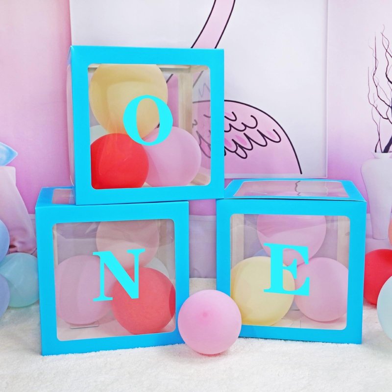 Blue One Boxes for 1st Birthday, One Balloon Box With 20 Balloons, Baby Girl First Birthday Decorations, 1st Birthday Party Decorations Boy, Anniversary Photoshoot Props Backdrop. (Blue)