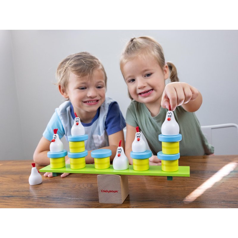 - KID FRIENDLY: Chickyboom makes the perfect first balancing and counting game with easy to follow instructions for children and parents alike. Help develop a sense of balance, counting skills, strategic thinking, turn-taking, hand-eye coordination, dexterity and fine motor skills with this fun, fast game for kids. For 2-4 players, perfect for ages 4+
