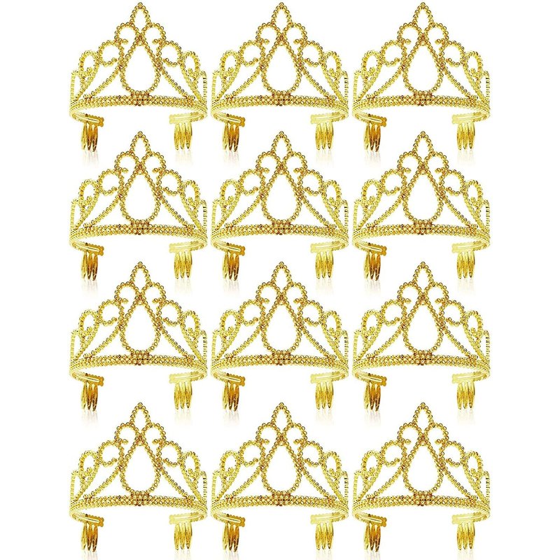 BLUE PANDA 12 Pack Gold Tiara for Girls, Princess Dress Up Crown for Kids Costume Birthday Party Favors in Bulk