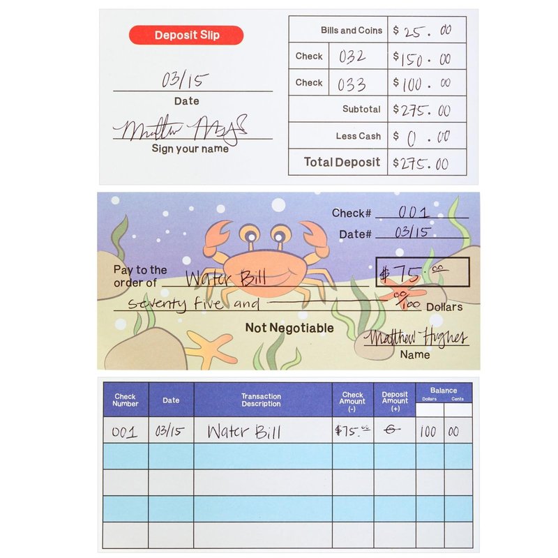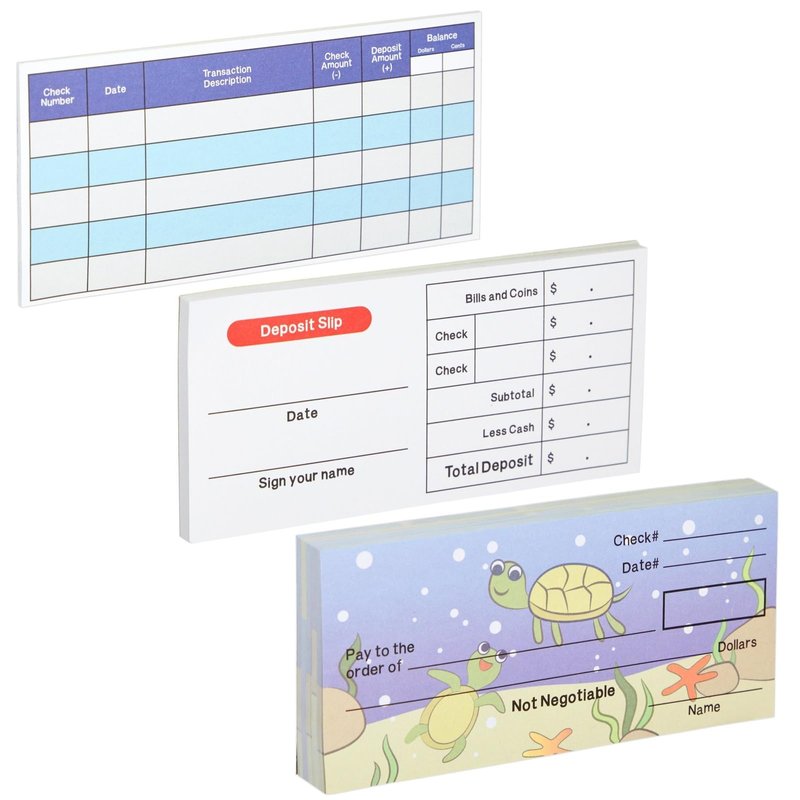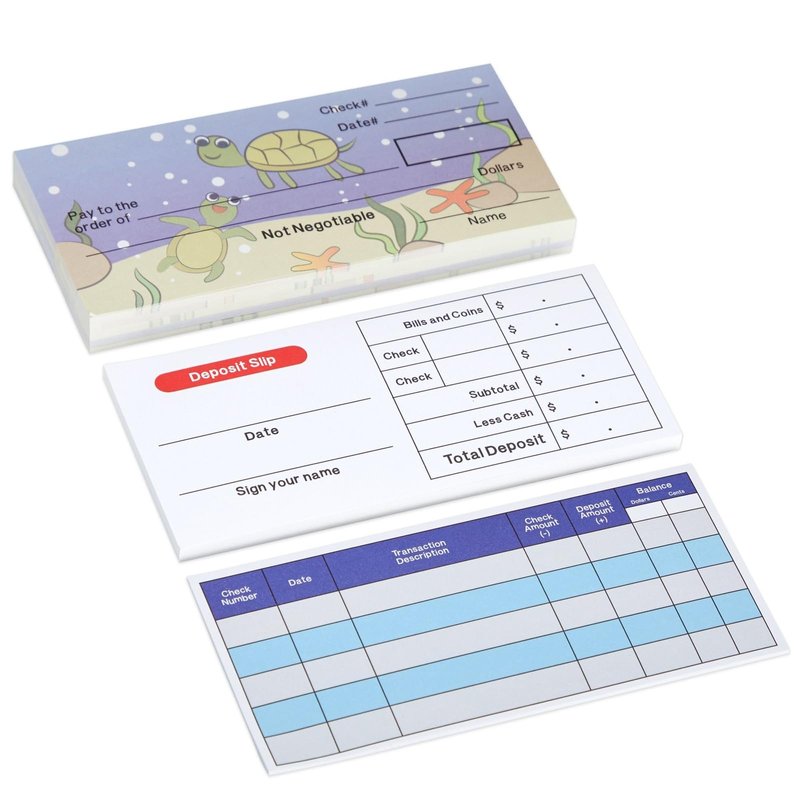 - Comprehensive Set: This pack includes 3 books with a total of 100 pretend checks for kids, 40 fake deposit slips, and 10 fake check registers. The 150 fake blank checks feature 5 assorted underwater animal designs, with 20 sheets of each design