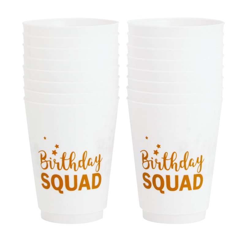 BLUE PANDA 16 Pack Reusable Happy Birthday Party Cups for Women, Birthday Squad Plastic Tumblers for Adults (White, 16 oz)