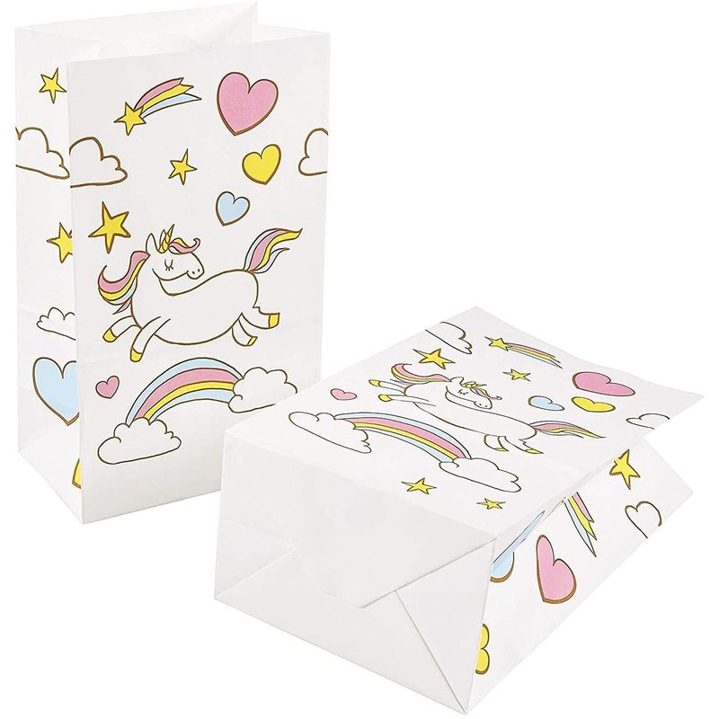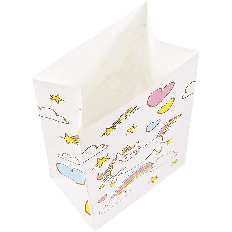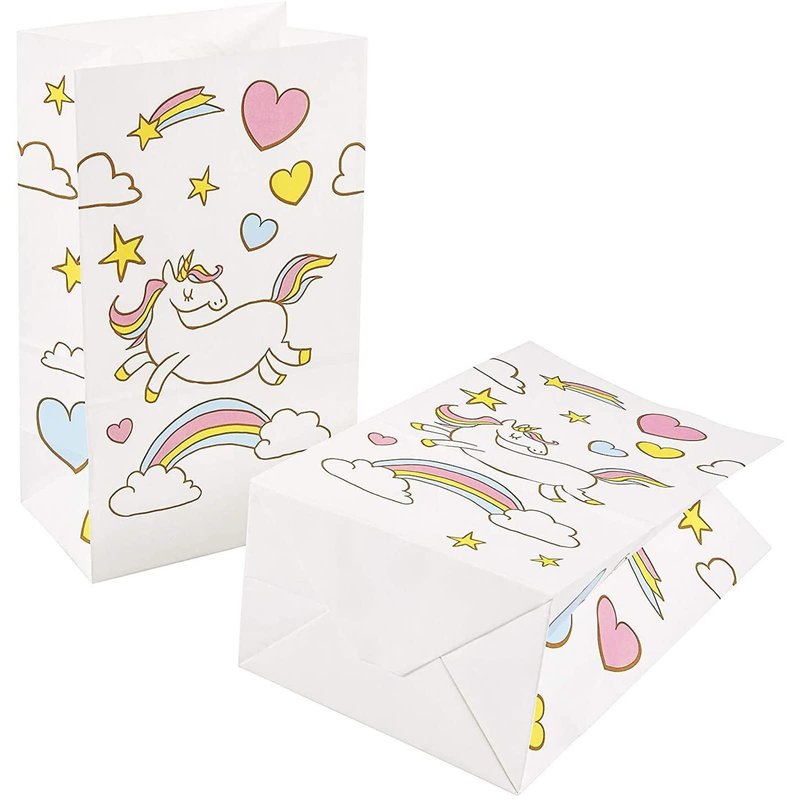- Unicorn Party Decorations: Complete your rainbow unicorn party decor with these white favor bags; hand them out to guests as they arrive, or place on the dining tables