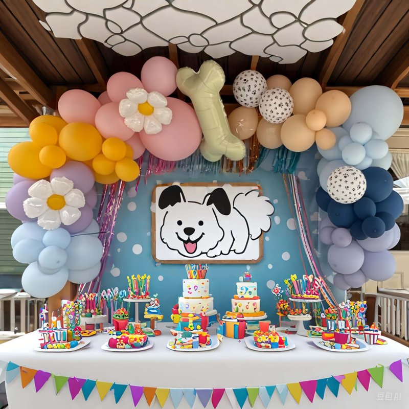 The curated color combination of pastels and paw prints gives this set a charming, child-friendly vibe, perfect for bringing a smile to any celebration.