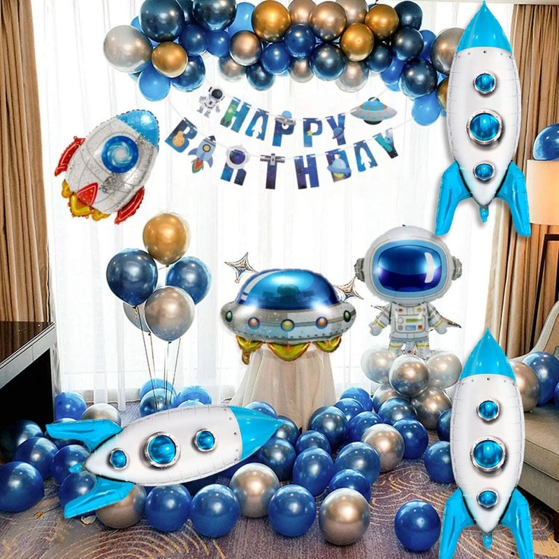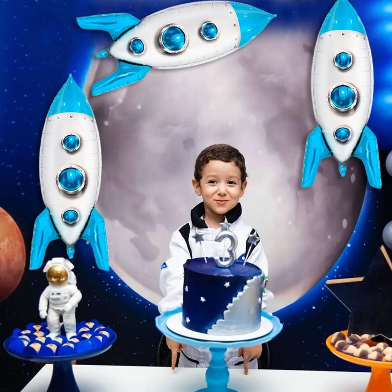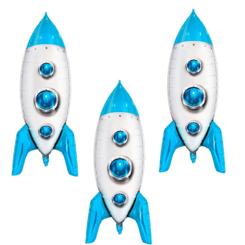 - Blue Rocket Balloons: You will get 3 pieces 4D Spaceship foil balloons, these Rocket Balloons, and sizes are 33 × 19 inch,1 rolls of ribbon,1 straw. Rocket balloons are best decor choice for decorating space themed party, rocket birthday party.