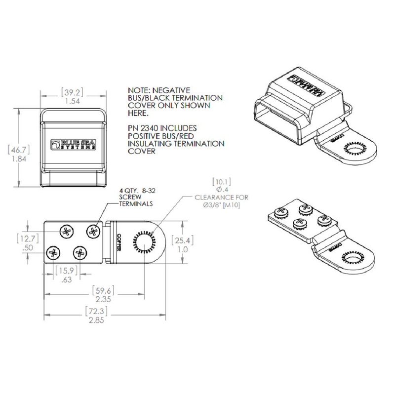 Blue Sea Systems 2340 Battery Terminal Mount Tin-plated Copper BusBars, Positive and Negative with 4 x 10-24" Stainless Screws, 32V, 100A,Red/Black