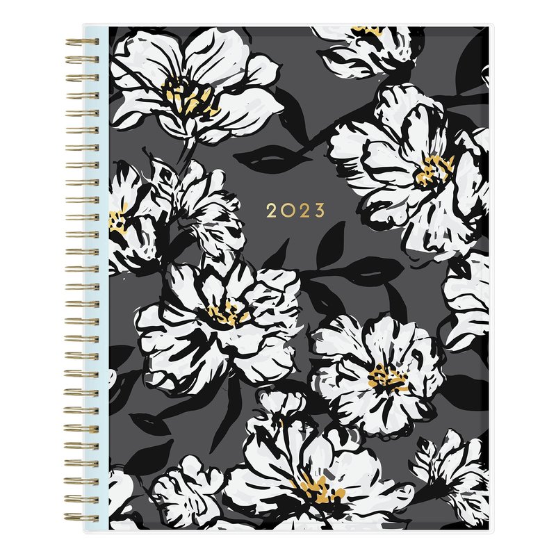 - Monthly calendar pages feature black and white bold floral designs with flecks of gold foil for a touch of sophistication and offer plenty of room for all of your important information