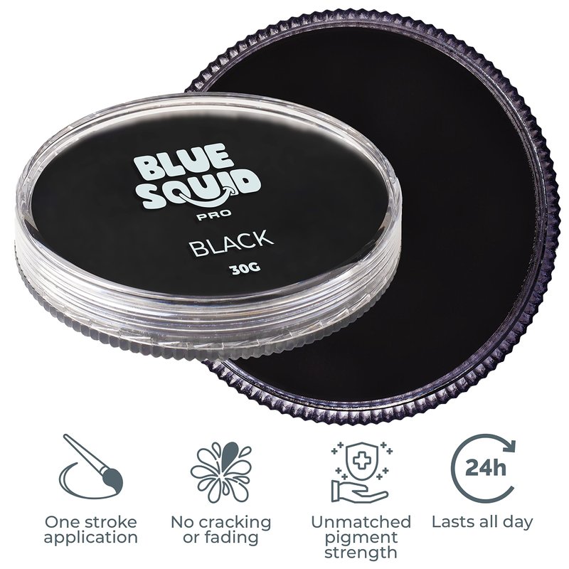 Blue Squid PRO Face Paint - Professional Water Based Single Cake Facepaint & Body Paints - SFX Makeup, Kids Adults Face Painting for Costume, Halloween, Cosplay - Classic Black 30g / 1oz