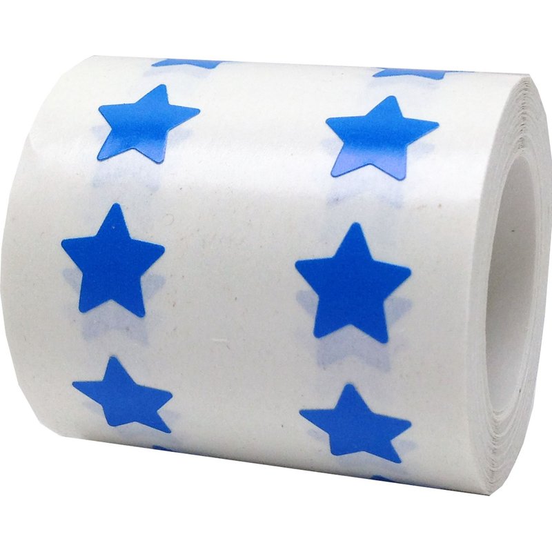 1/2" Blue star stickers are great to use as teacher/student awards, charts or party decoration. There are 1,000 of these tiny star stickers on a roll. We actually put about 50 extra on the roll to make up for the label we use to hold the roll together.