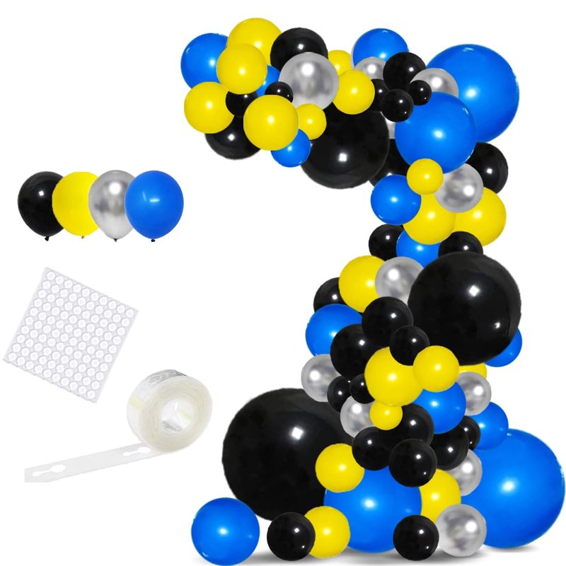 Total 113Pieces for DIY blue black yellow balloon garland kit.