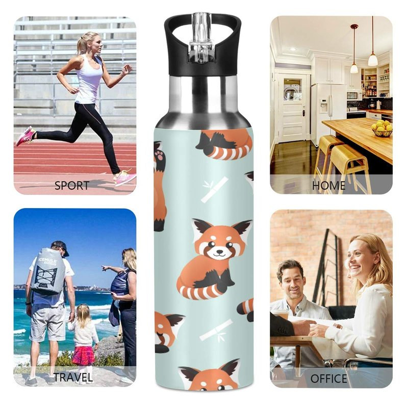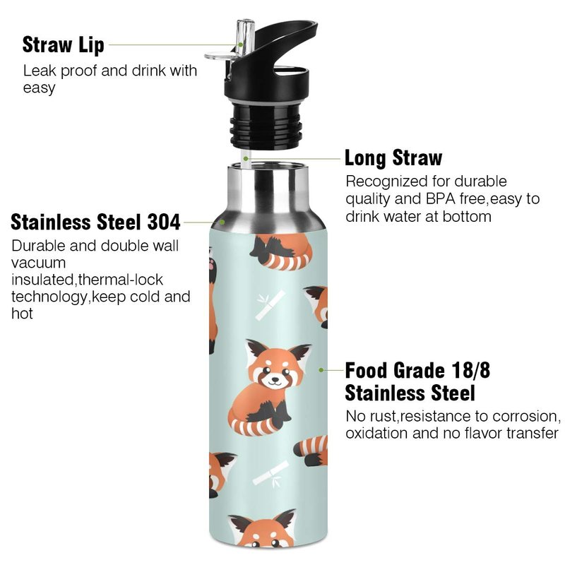 Blueangle Cute Red Panda Water Bottle with Straw, Insulation Stainless Steel Water Bottle BPA Free Water Jug for Fitness Camping Outdoor Sports