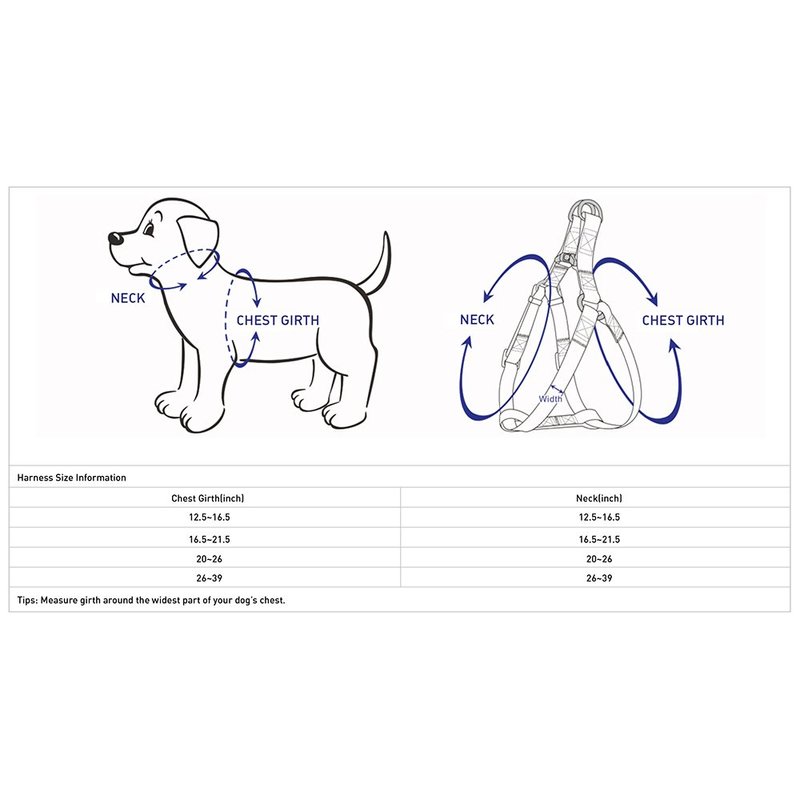 - 【 CARE 】Wipe to clean; The harness does not stretch itself. NEVER leave your dog unattended with a harness on