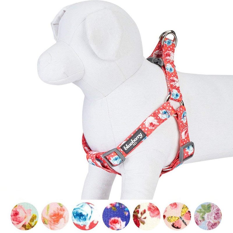 Blueberry Pet 9 Patterns Step-in Spring Scent Inspired Rose and Polka Dot Print Brink Pink Dog Harness, Chest Girth 16.5" - 21.5", Small, Adjustable Harnesses for Dogs