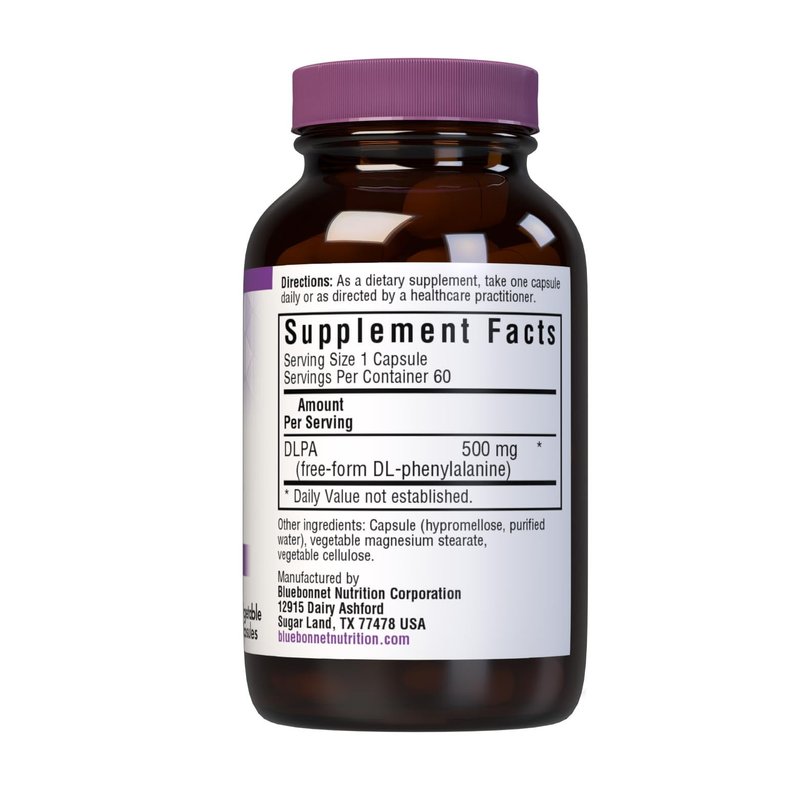 Bluebonnet Nutrition DLPA (DL-Phenylalanine) 500mg, Free-Form Amino Acid, for Nervous System Support, Soy-Free, Gluten-Free, Non-GMO, Kosher, Vegan, 60 Vegetable Capsules