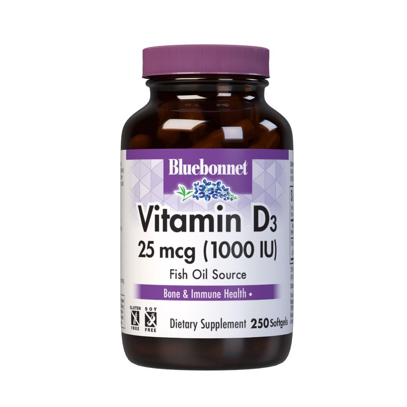 Bluebonnet Nutrition Vitamin D3 1000 IU Softgels, Aids in Muscle and Skeletal Growth, Cholecalciferol from Fish Oil, Non GMO, Gluten Free, Soy Free, Dairy Free, 250 Softgels