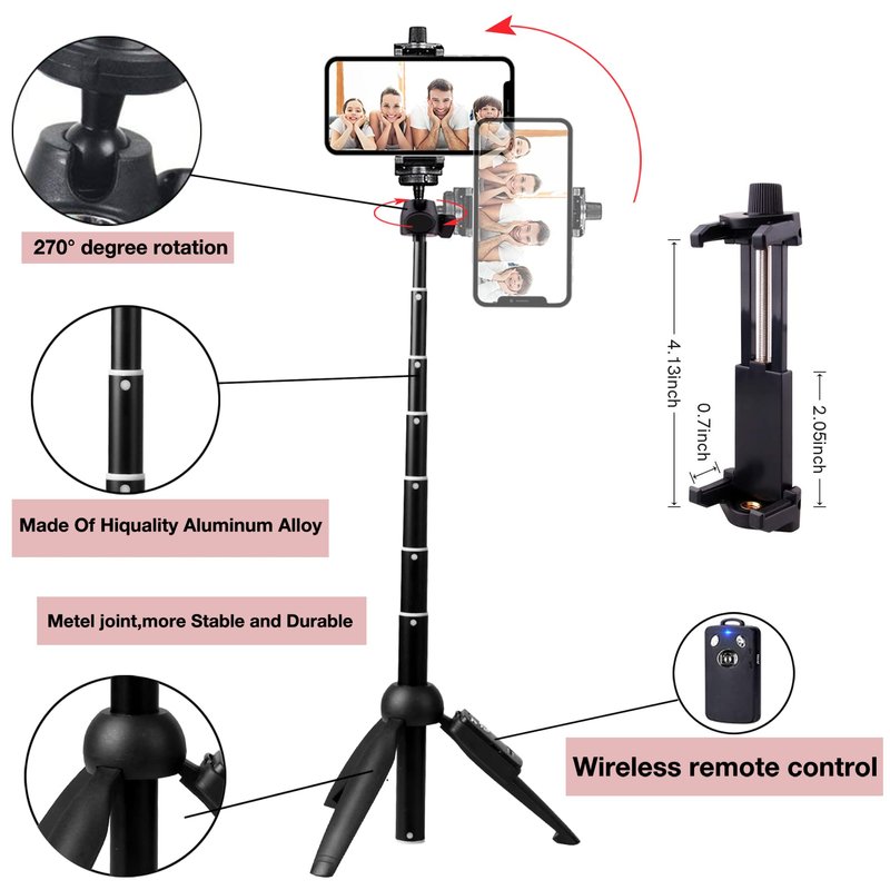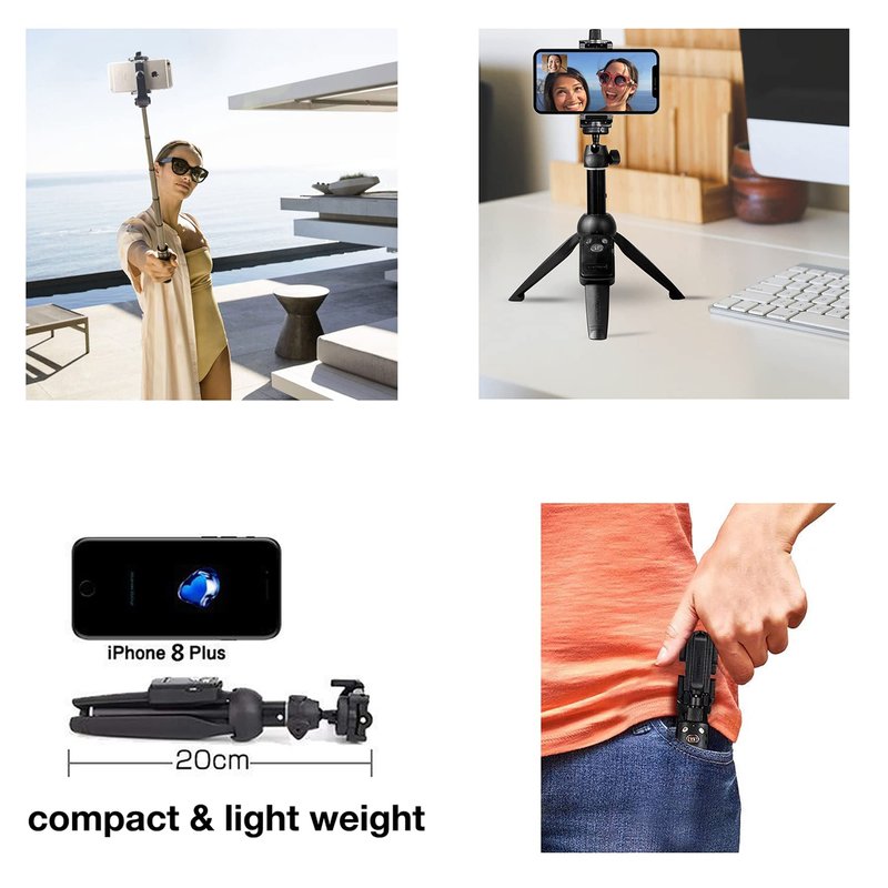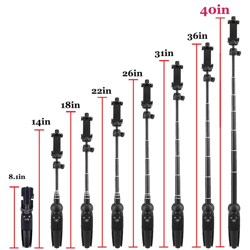 - 【EXTENDABLE & FOLDABLE】Extendable length from 8.1 inches to 40 inches so you can choose your desired length.Compact pocket size design, which is easy to carry. You can take it anywhere, making it as a tripod or selfie stick, perfect for travel, sports activities, camping, family gatherings and much more.