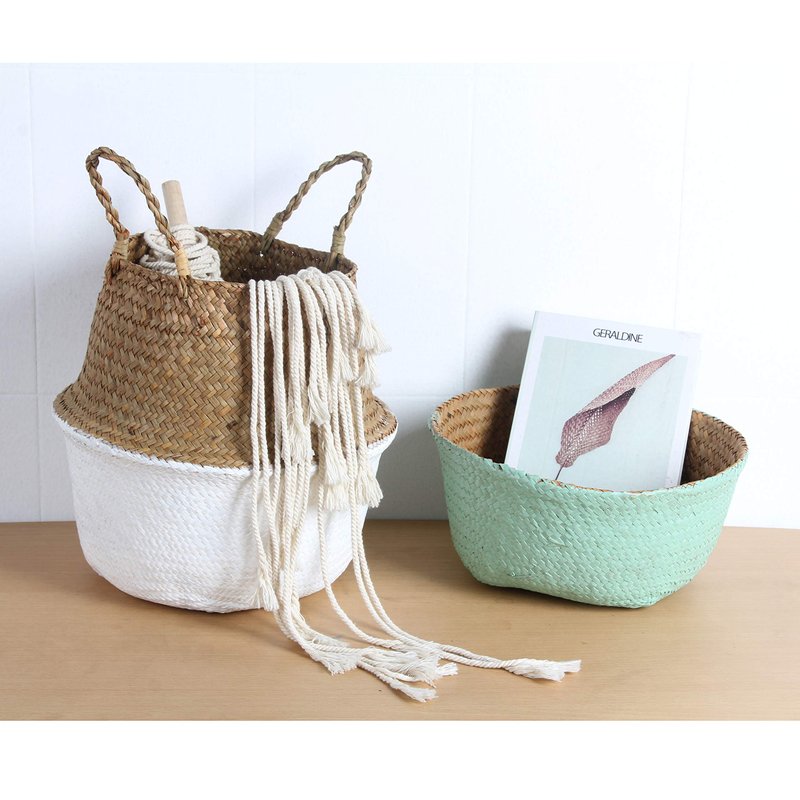 BlueMake Woven Seagrass Belly Basket for Storage, Laundry, Picnic, Plant Pot Cover, and Grocery and toy storage (Small, Black)