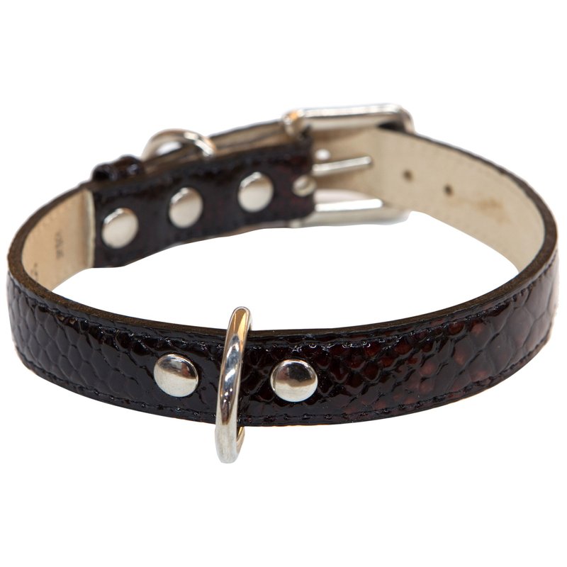 Bluemax Genuine Leather Patent Snake Dog Collar, 1-Inch by 20-Inch, Brown