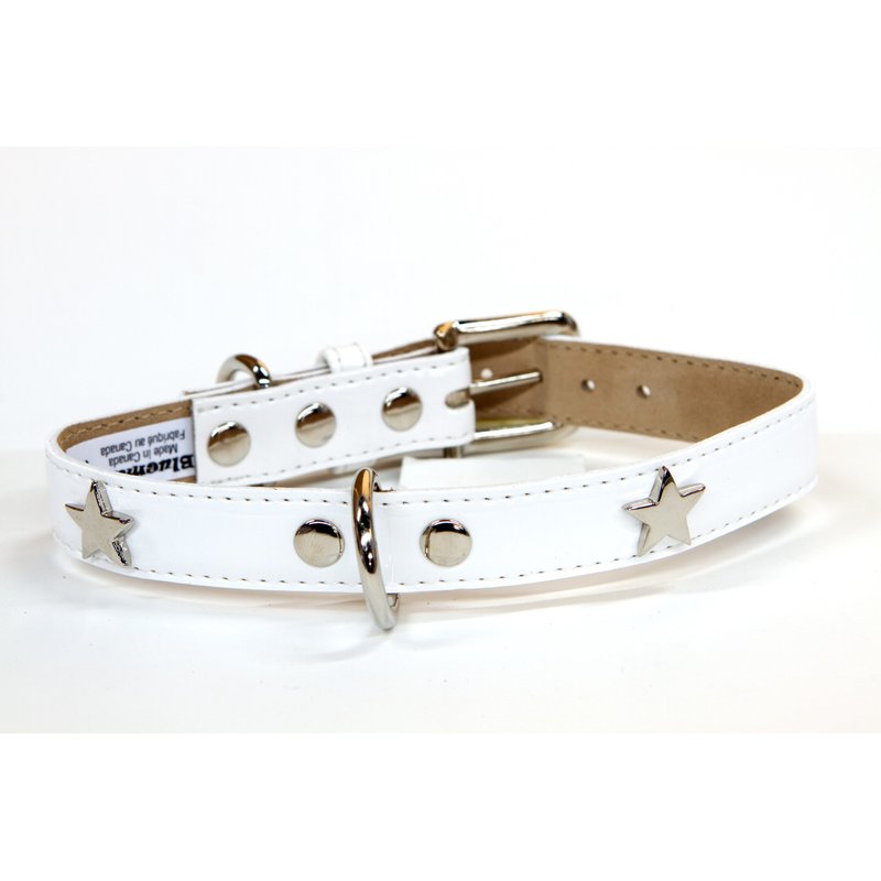 Bluemax Italian Synthetic Patent Dog Collar with Star Stud, 1-Inch by 22-Inch, White