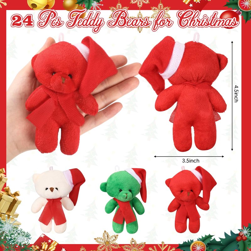 - Various Styles: you will get 24 mini stuffed Christmas bears, including 3 different colors of red, green and white styles, 8 of each style, cute stuffed bears more in line with the festive atmosphere of Christmas colors, enough to meet your daily use, sharing or decorating needs