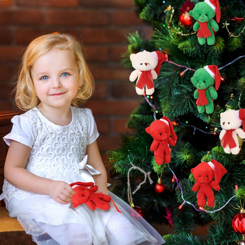 - Cute Appearance: Christmas bear plush incorporate the Christmas elements of Santa's hat and scarf and are available in red, green and white to make them look cuter and more festive for Christmas
