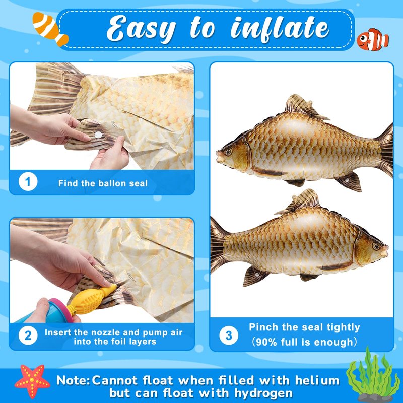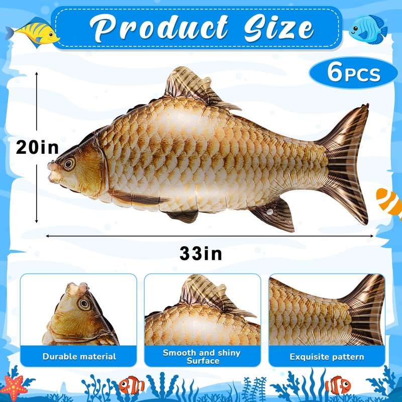 • Versatile Usage: not just limited to party decorations, these fish balloons for party have a wide range of applications; Be it Halloween or Father's Day, retirement parties or fishing games, these charming fish balloons fit in everywhere; Additionally, they can be employed as home decoration, theater props, photo props, educational tools, catering to most of your creative decoration needs