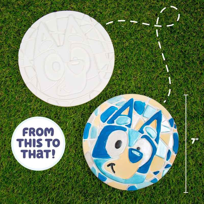 - 7-INCH BLUEY STONE: Who doesn’t love Bluey’s sweet face?! This stepping stone kit features everyone’s favorite pup front and center on a 7” round ceramic stone.