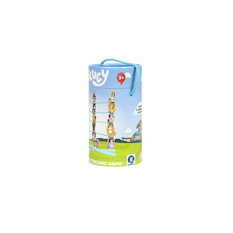 Bluey – Wooden Stacking Game – 25 Build and Balance Pieces with Characters and Sticks in a Storage Tube – FSC Certified for Children 3 Years and Up