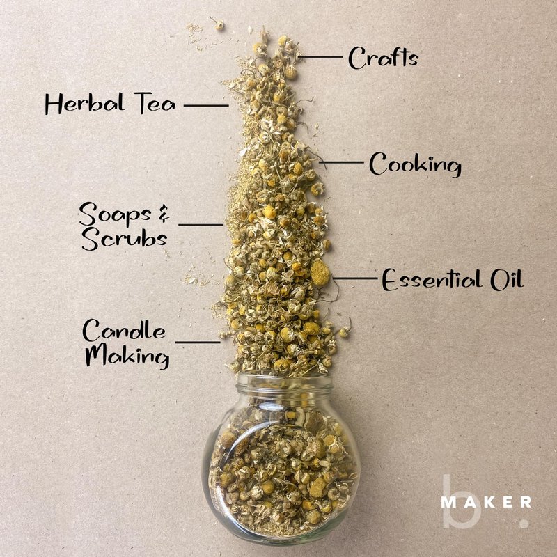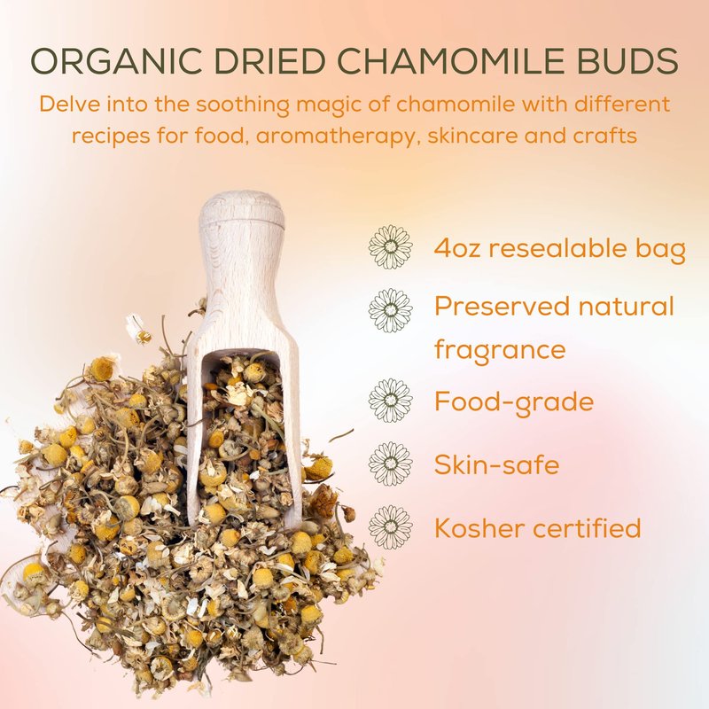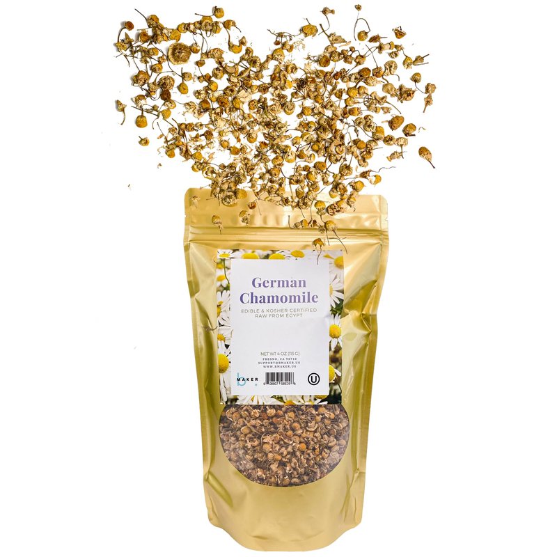 bMAKER Dried Chamomile Flowers (4oz) - Bulk Bag - Kosher Certified Chamomile for Relaxation, Dried Flowers for Soap Making, Lotion, Shampoo, Loose Leaf Chamomile Tea