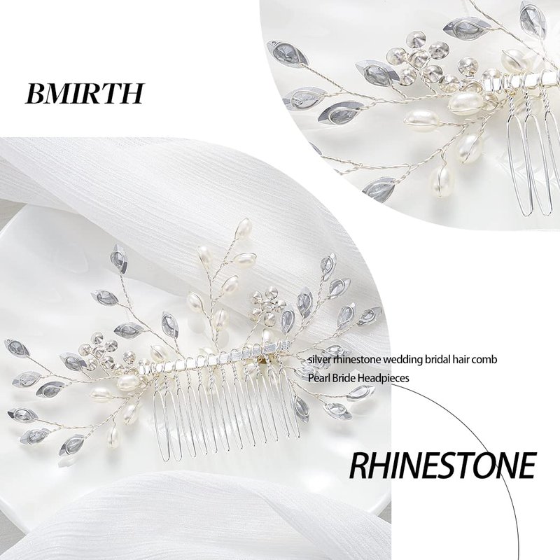 Bmirth Wedding Hair Comb Pearl Bride Headpieces Rhinestone Bridal Hair Jewelry Side Hair Accessories for Women and Girls