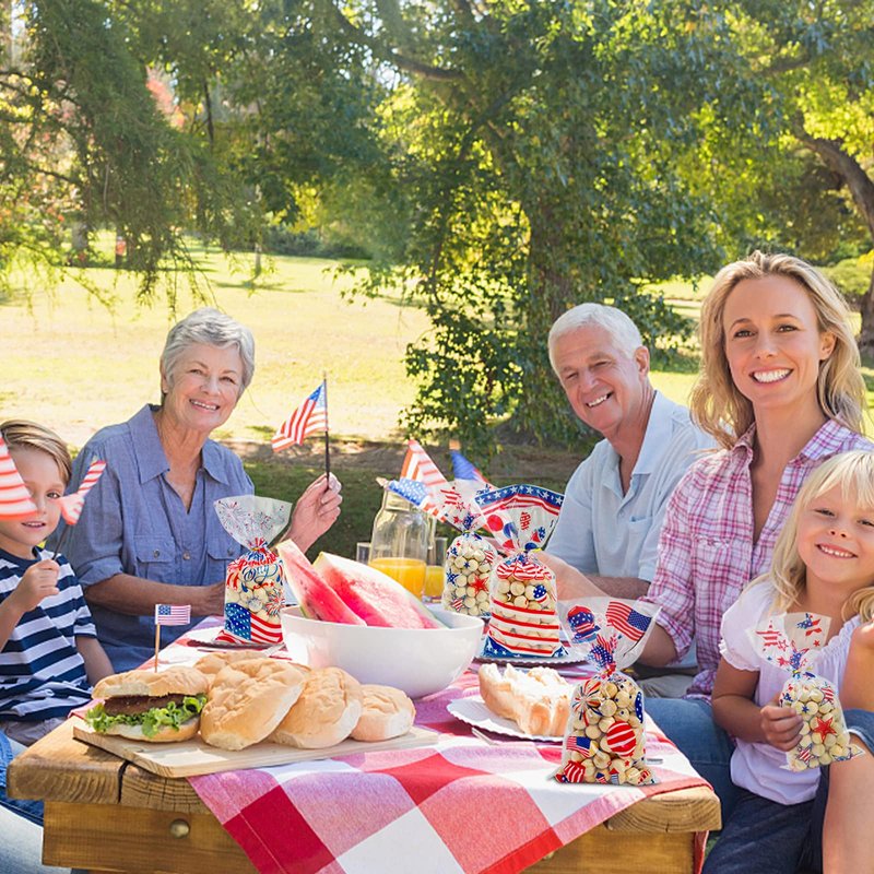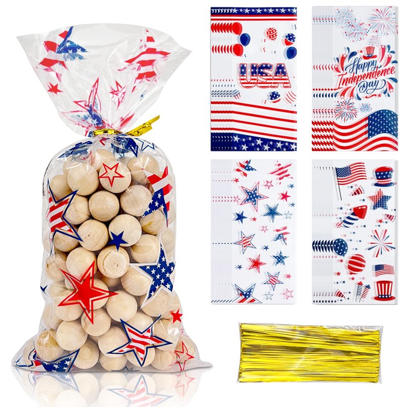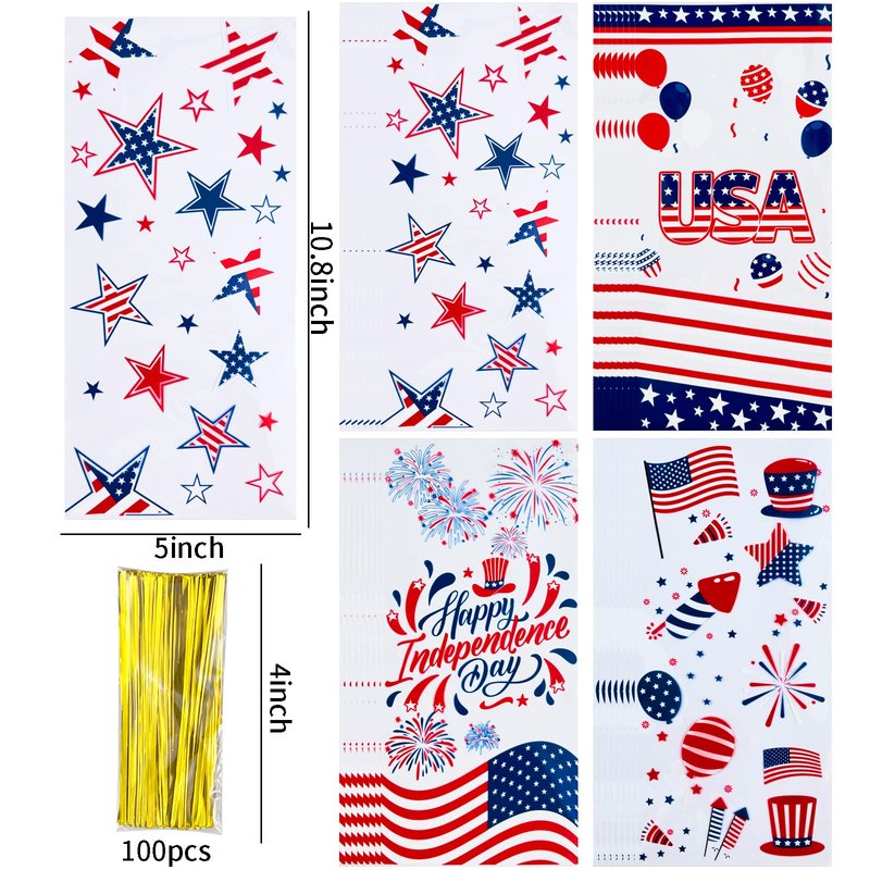 - 【Package Included】80pcs 4th of July treat bags in 4 different designs: 20 pieces per style with 80 golden twist ties. Which are enough to meet your daily holiday needs.