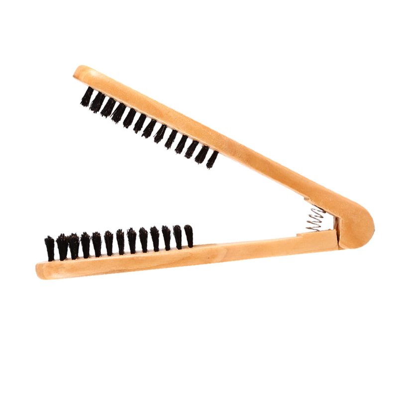 Boar Bristle Clamp Hair Brush, Double Sided Brush Clamp Straightener,Professional Hair Straightening Comb Styling Tools,with Wooden Handle