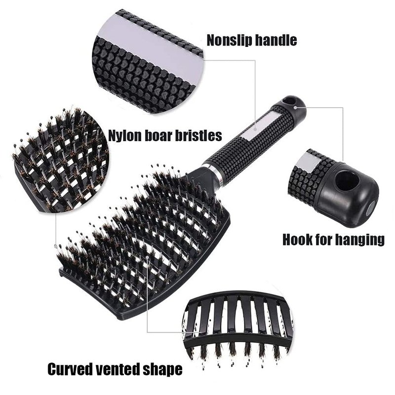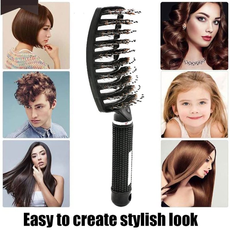 - Ergonomic curved shape: The no tangle boar hair brush fits well with the outline of our head for comfortable hair brushing and scalp massaging, reduce hair breakage, works on wet or dry hair, easy to create a stylish look