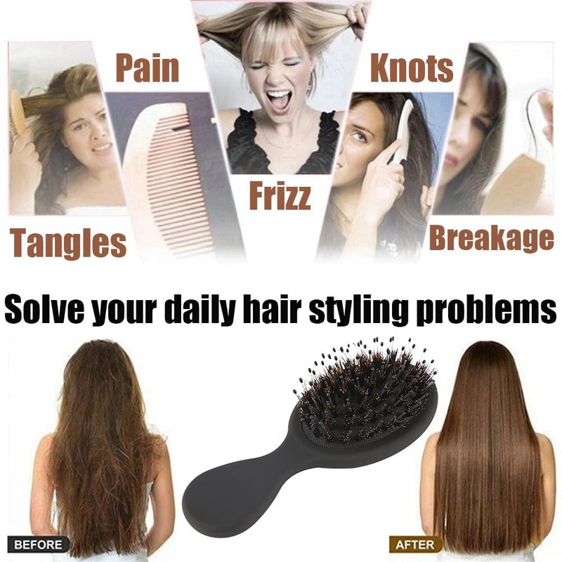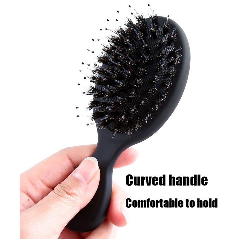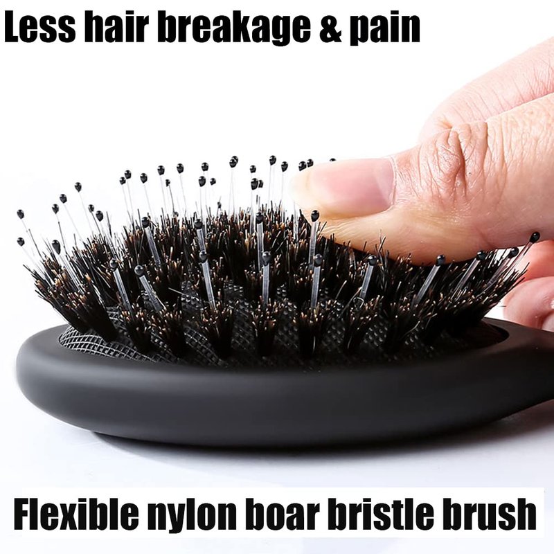 Boar Bristle Mini Hair Brush Travel Detangling Paddle Brush for Curly Fine Straight Natural Tangled Hair, Anti-frizz Detangler Brush Styling Hairbrush for Women Men, Boar Nylon Mixed Bristle Brush