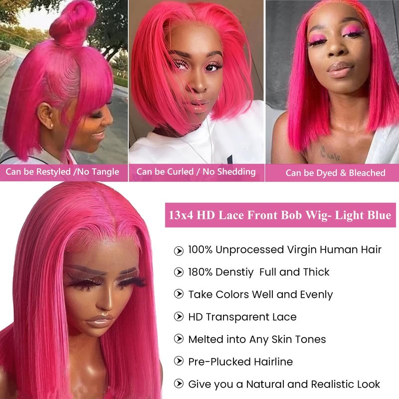 - Color: #13x4-HD Hot Pink Bob Wig