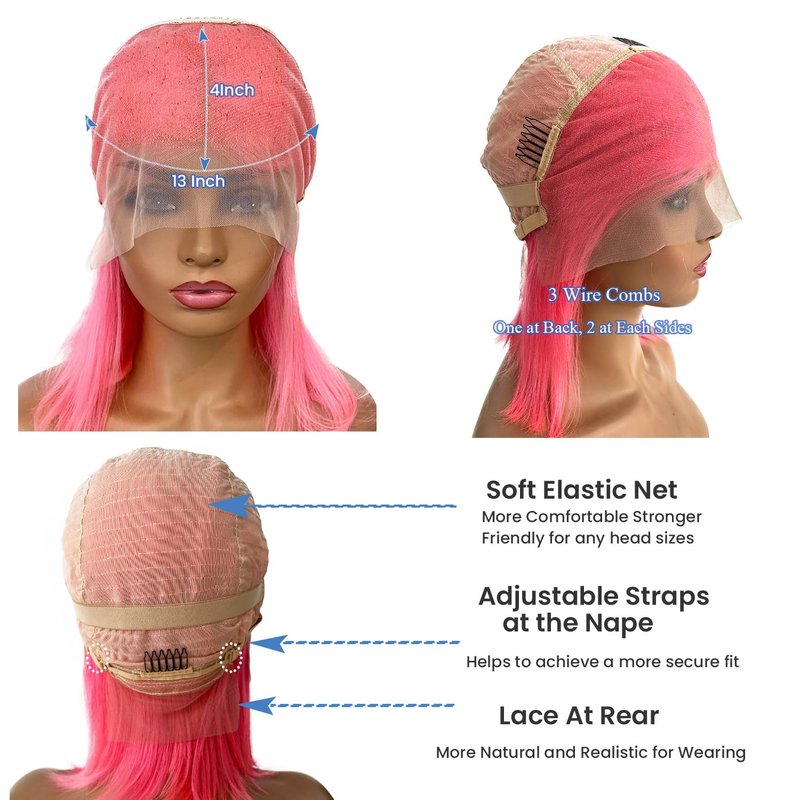 *Cap Structure: Short Bob Wigs with 3 Combs and 2 Adjustable Straps