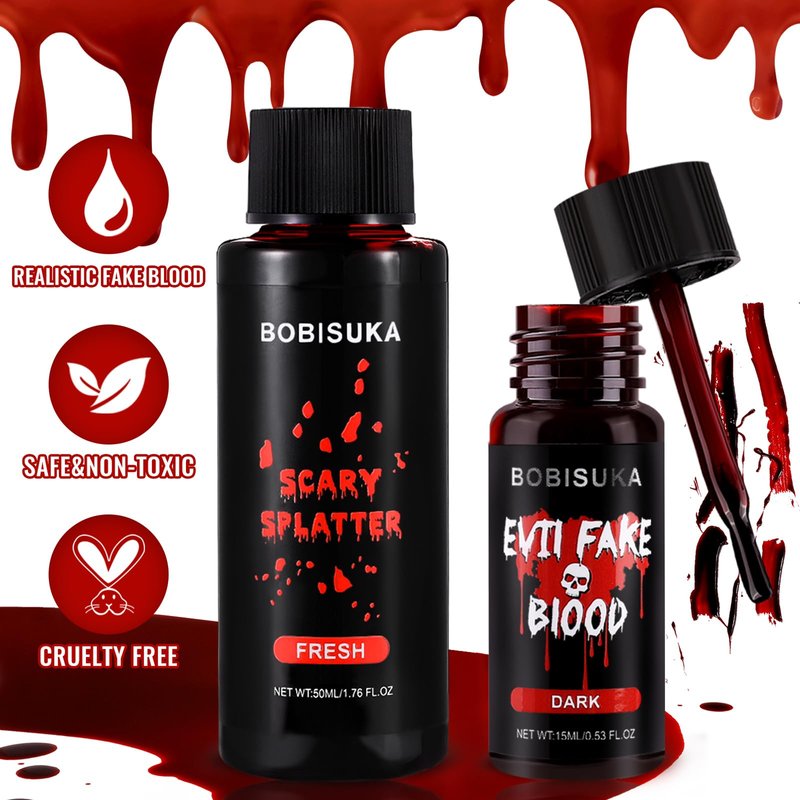 BOBISUKA 2PCS Halloween Fake Blood Makeup Kit