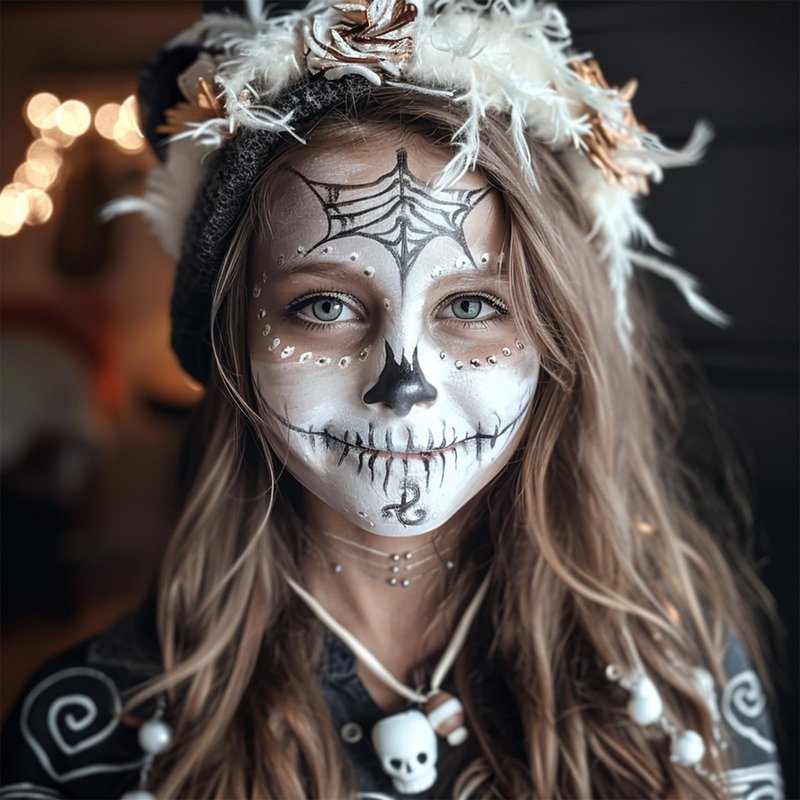 - Halloween Makeup Set: Get everything you need for the perfect Halloween Bride look! This kit includes white and black face paints (3g each), a high-quality brush for precise application, and a stunning crystal sheet to add that extra sparkle to your spooky makeup.