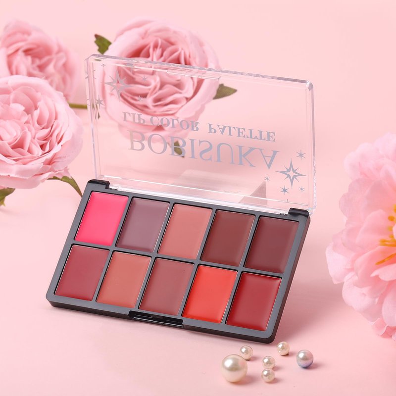 BOBISUKA Cream Lip Color Palette, 10 Colors Matte Lipstick Makeup Palette, Long Lasting Lipstick Palette, Moisturizing Waterproof Lip Creamy Formula For Soft - Daily